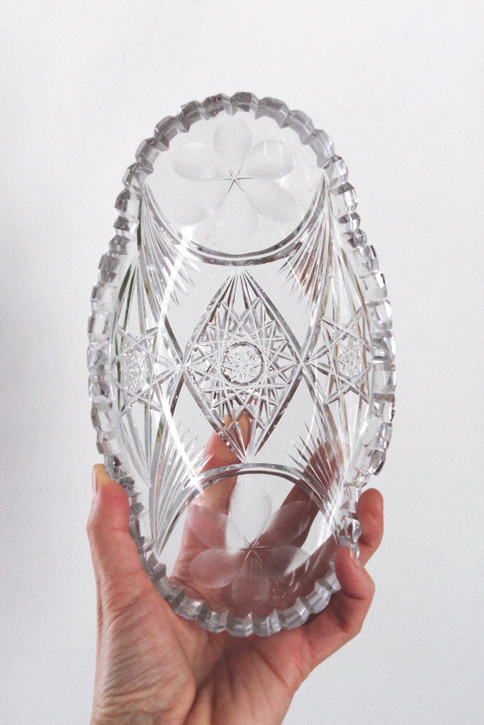 It features intricate, hand-cut patterns, including starburst and diamond motifs, characteristic of the ABP era (roughly 1876-1917).