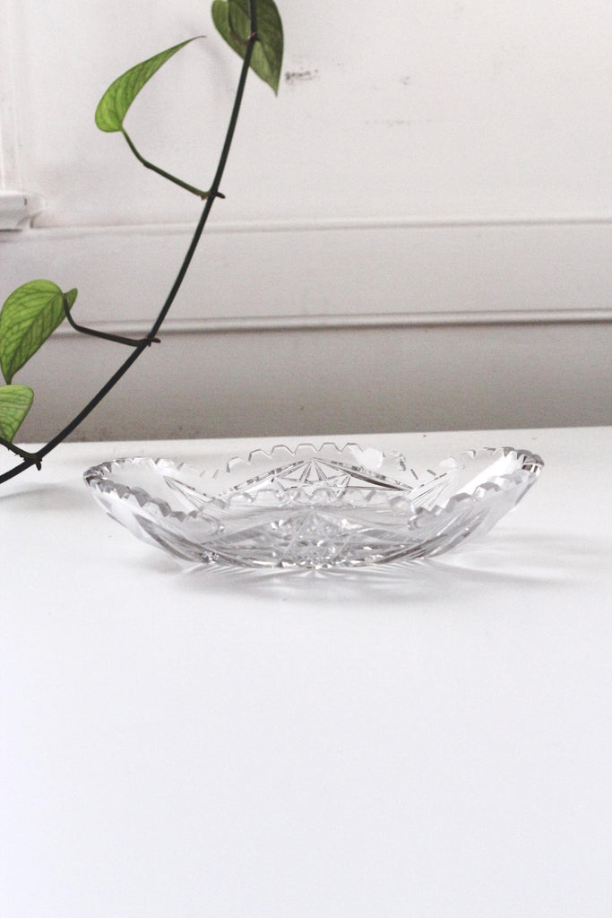 This is an American Brilliant Period cut glass oval serving dish, possibly a celery or relish dish.