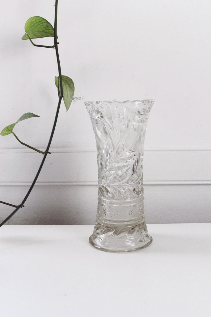 Antique McKee Innovation 407 EAPG Early American Pattern Glass Cut Etched Pressed Glass Flower Vase