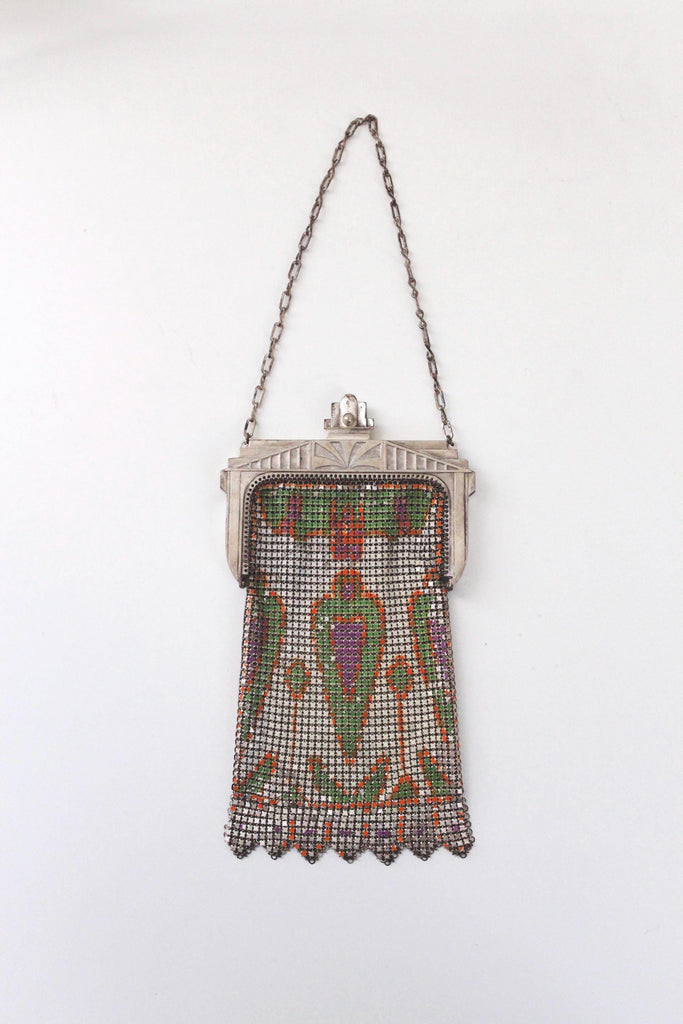 Antique 1920s Whiting & Davis Art Deco enamel mesh purse.