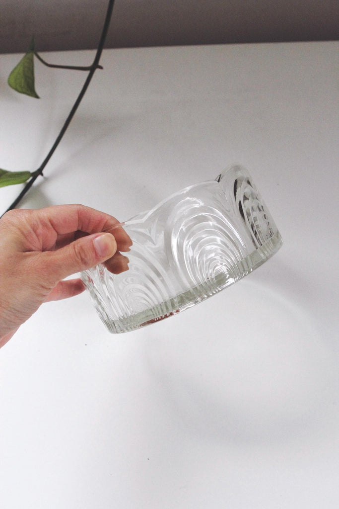 Vintage Art Deco Glass Serving Bowl with Scalloped Design, Trinket Dish
