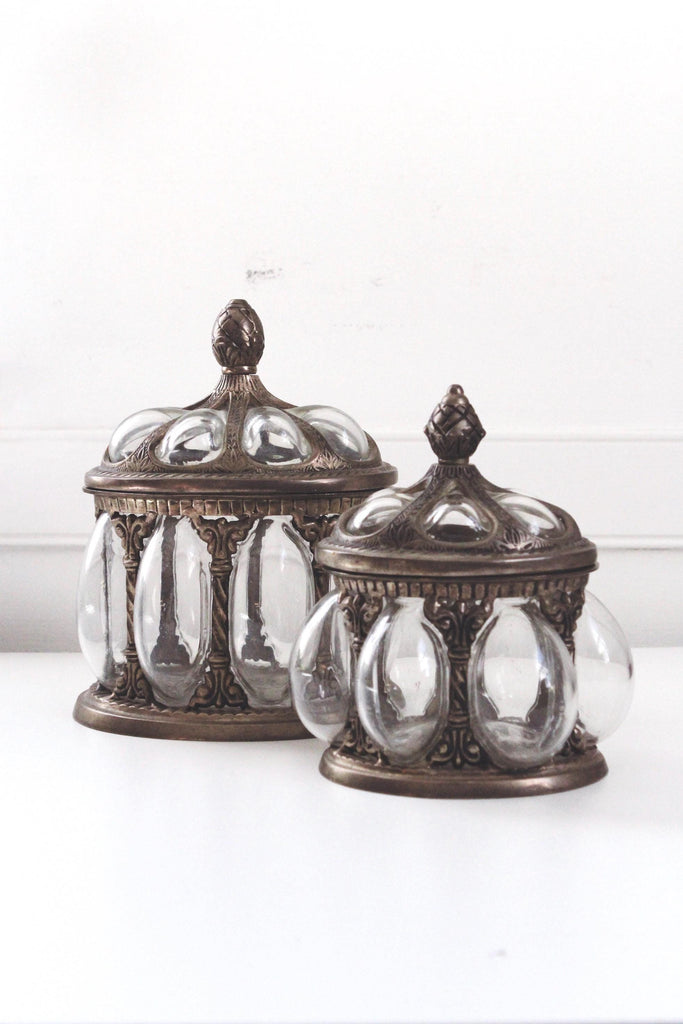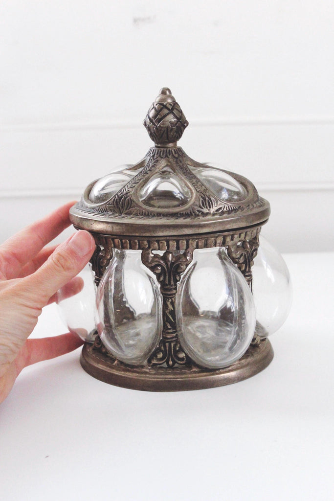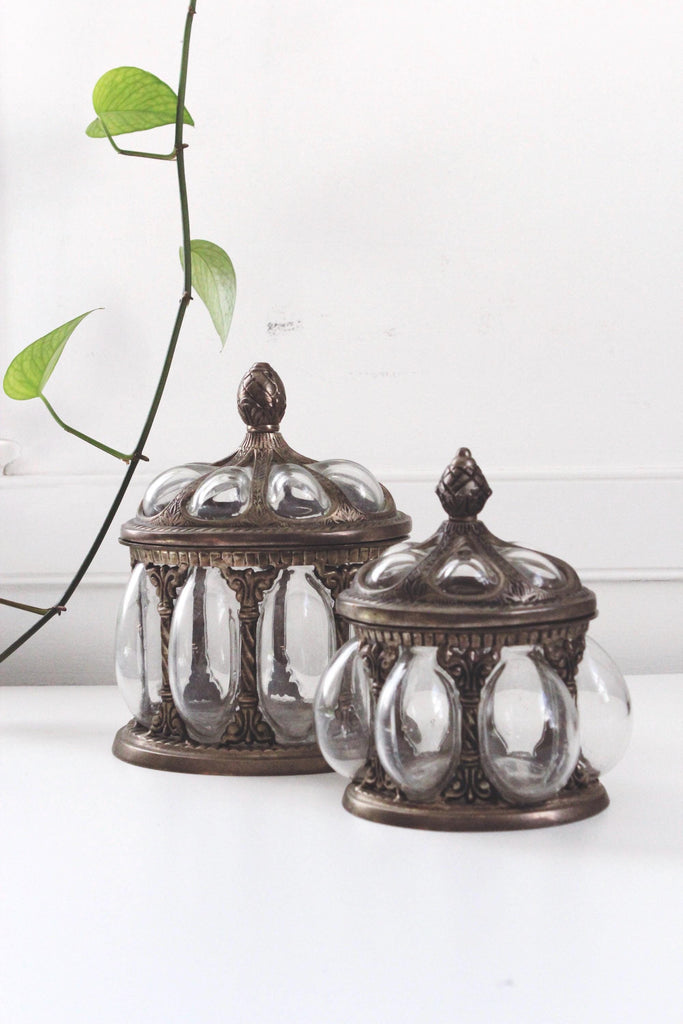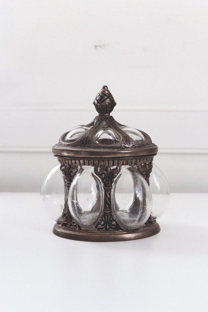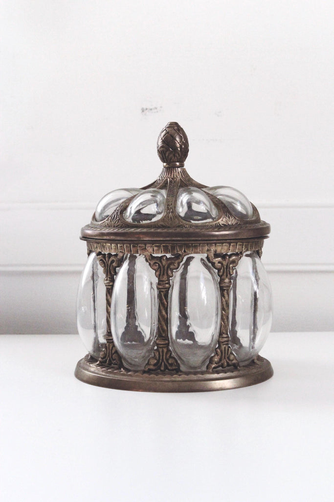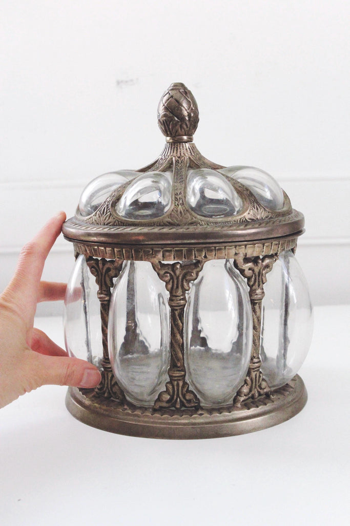 Vintage Baroque Brass Hand-Blown Bubble Glass Lidded Apothecary Jar