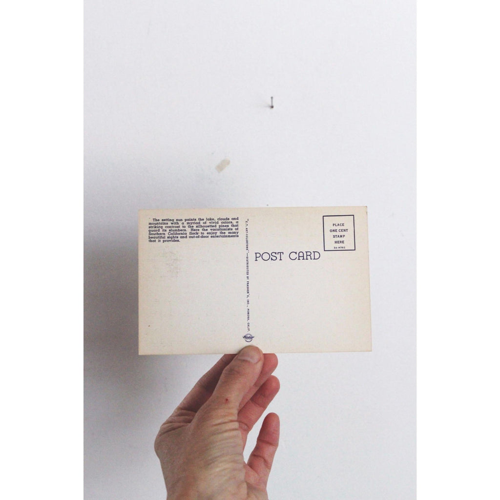 Vintage Big Bear Lake Postcard Sunset San Bernardino Mountains California Linen Era 1930s-1940s