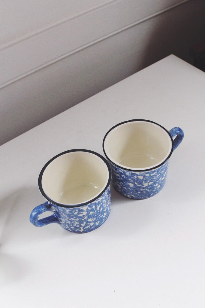 Vintage Blue Spongeware Mugs by Stangl Pottery, Splatter Pattern