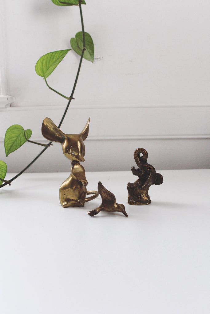 Vintage Brass Small Animal Figurine - Mouse, Elephant, Bird