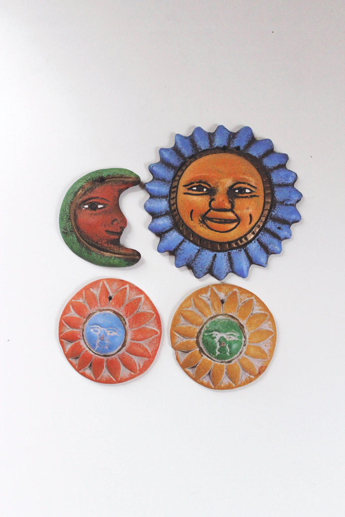 Vintage Celestial Sun Moon Pottery Wall Art | Sold Individually