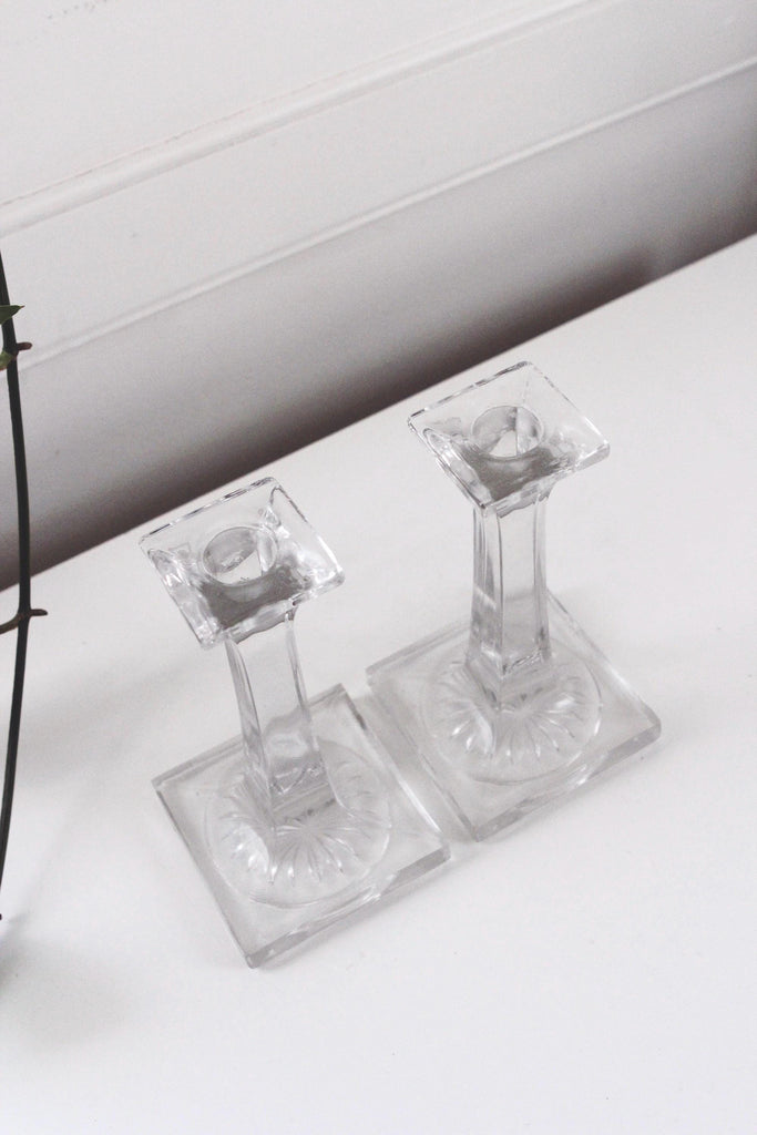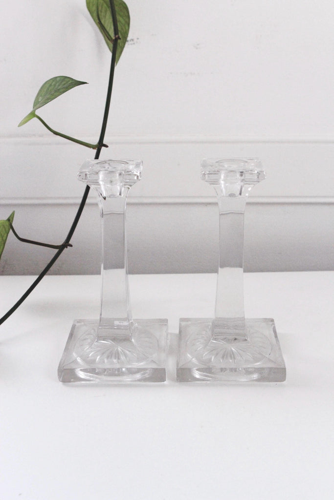 Vintage Crystal Candle Holders - Square Column, Minimalist Modern Design