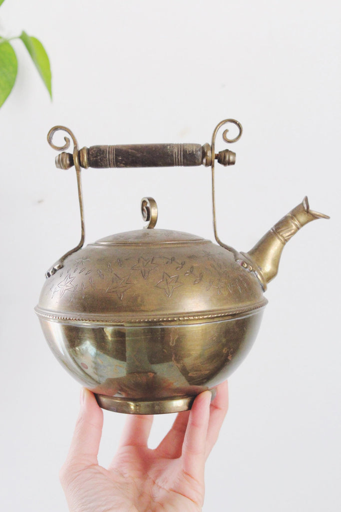 Vintage Etched Brass Teapot Tea Kettle