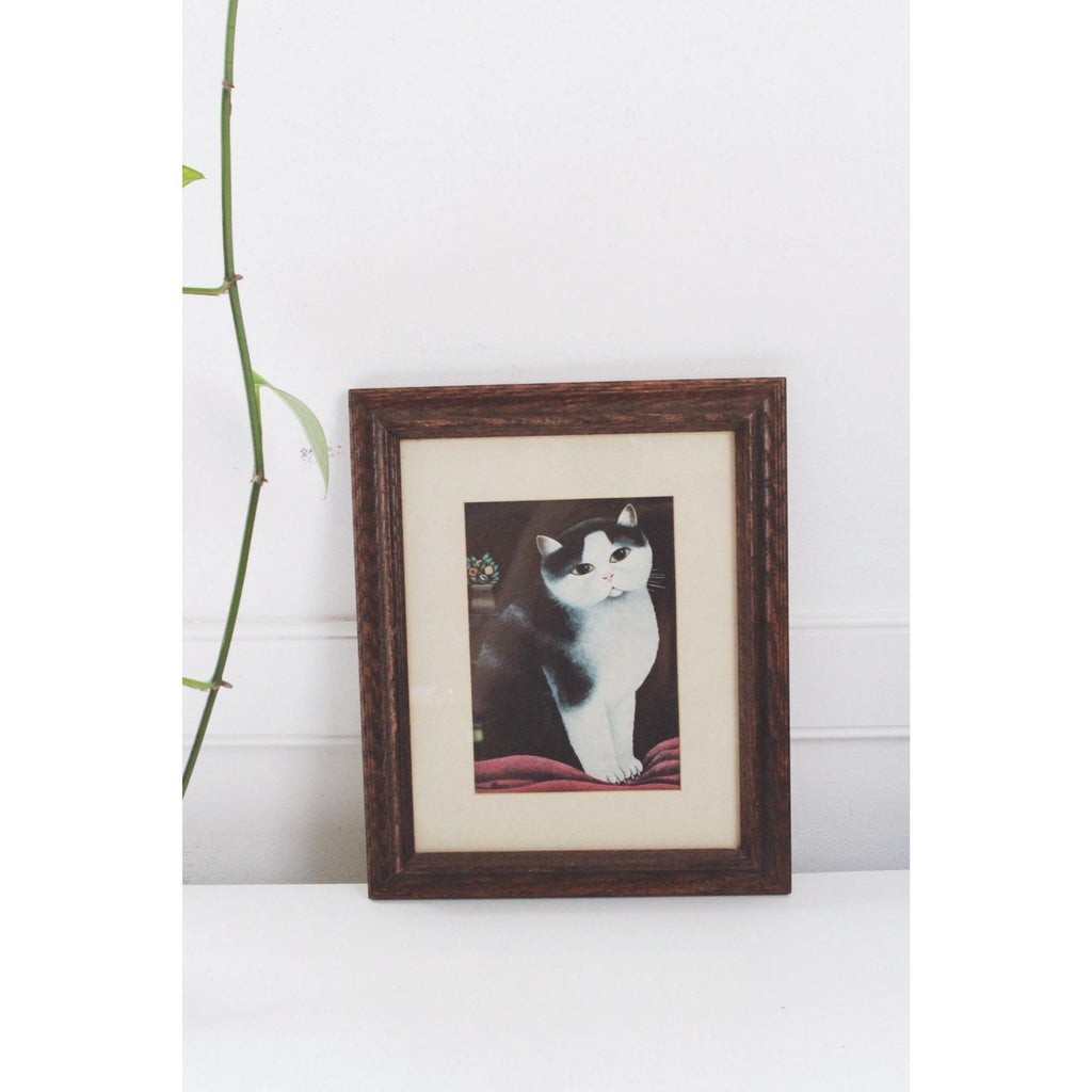 Vintage Framed Cat Art Print by Martin Leman - Rustic Wooden Frame - Cottagecore, Farmhouse