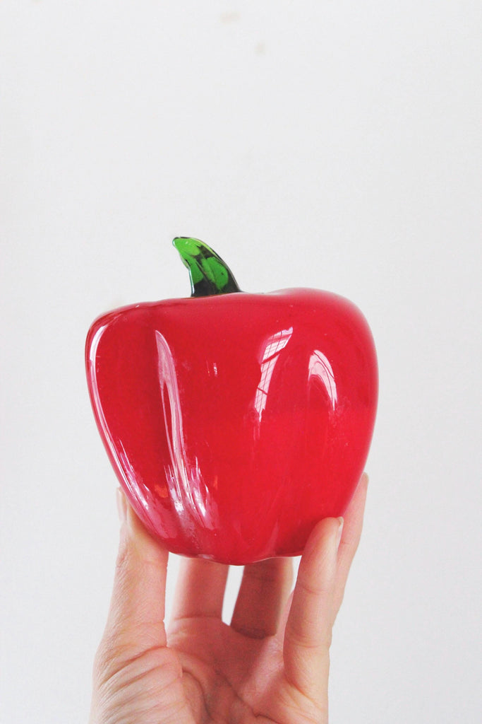 Vintage Glass Bell Pepper - Murano Style, Red - Hand Blown Art Glass Vegetable Sculpture Figurine