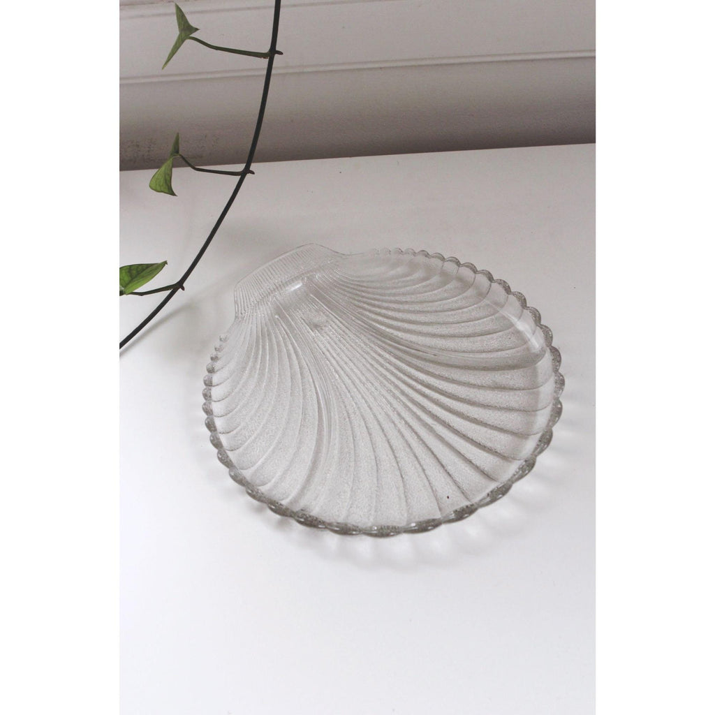 Vintage Glass Scallop Shell Serving Platter - Catchall Tray, Trinket Dish