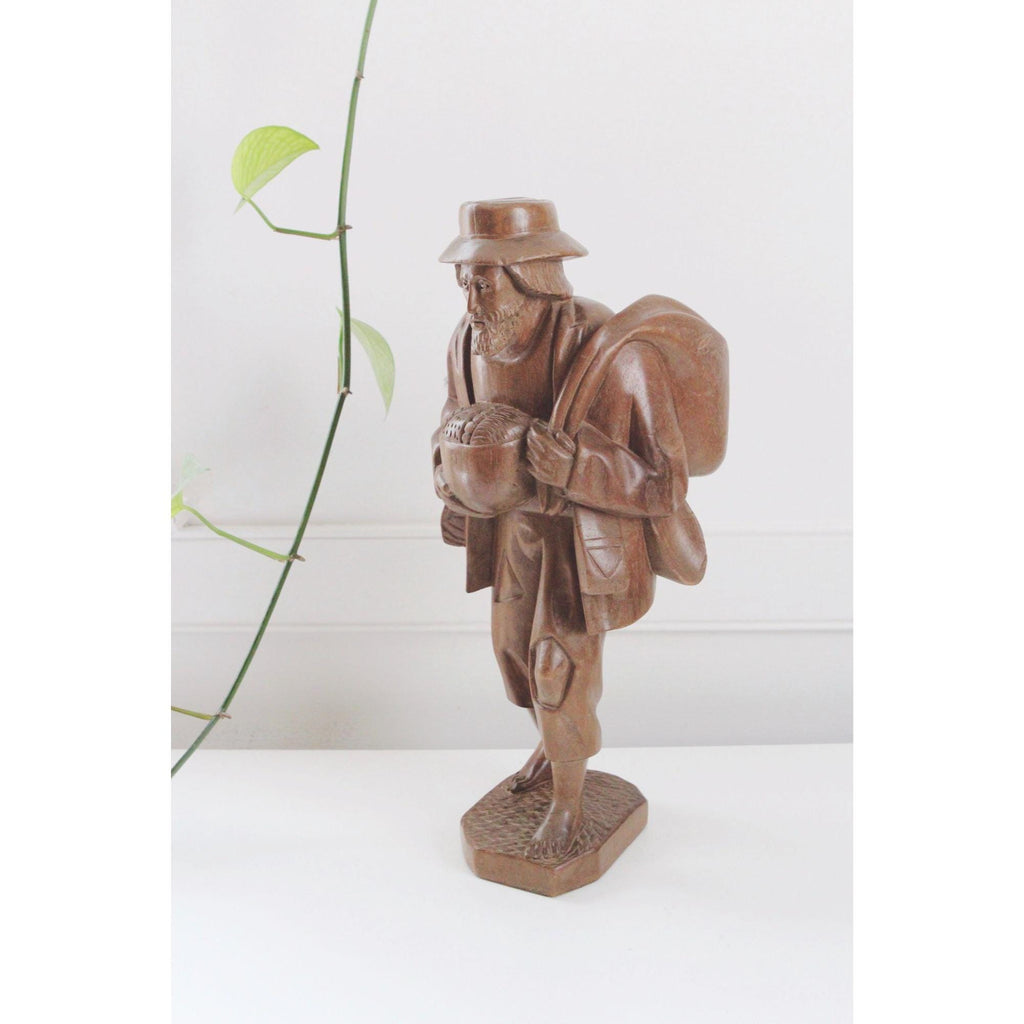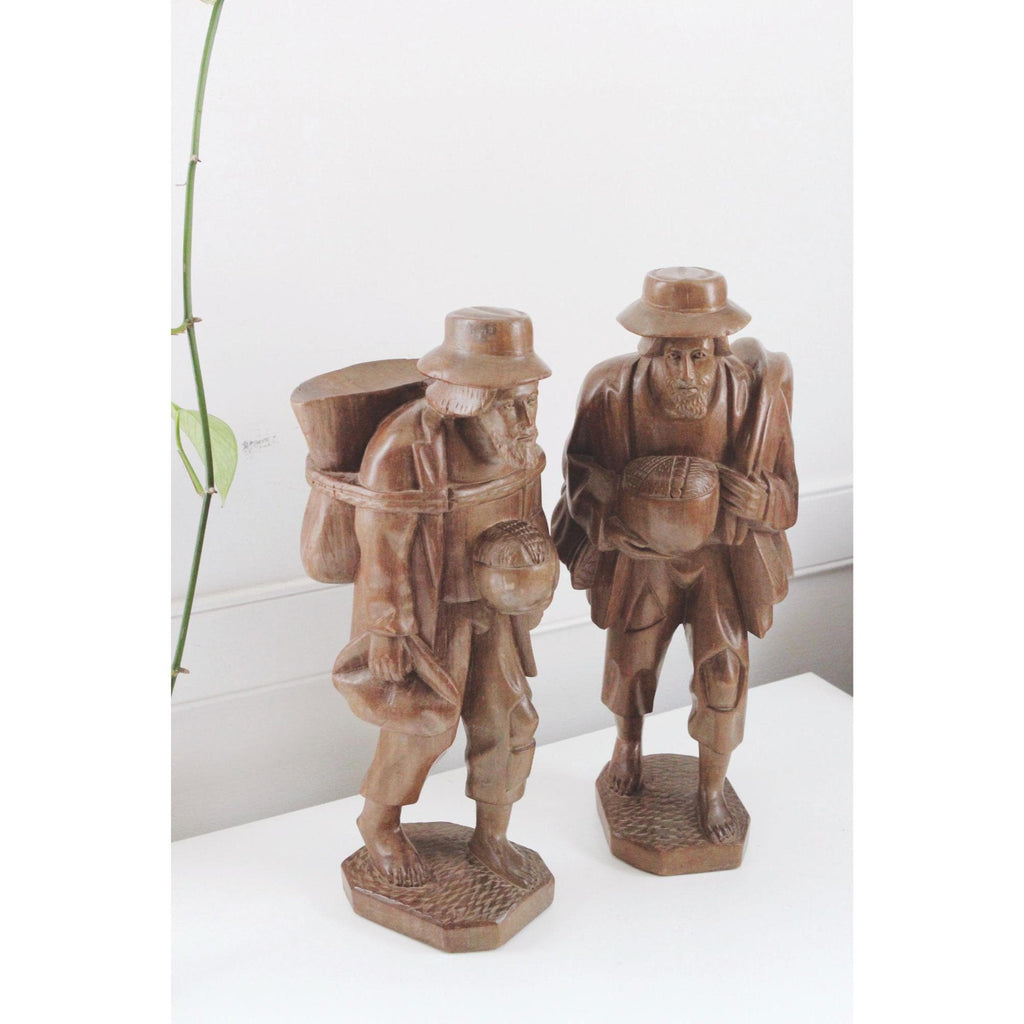 Vintage Hand-Carved Wooden Traveling Men Figurines - Vagabond Rustic Sculptures