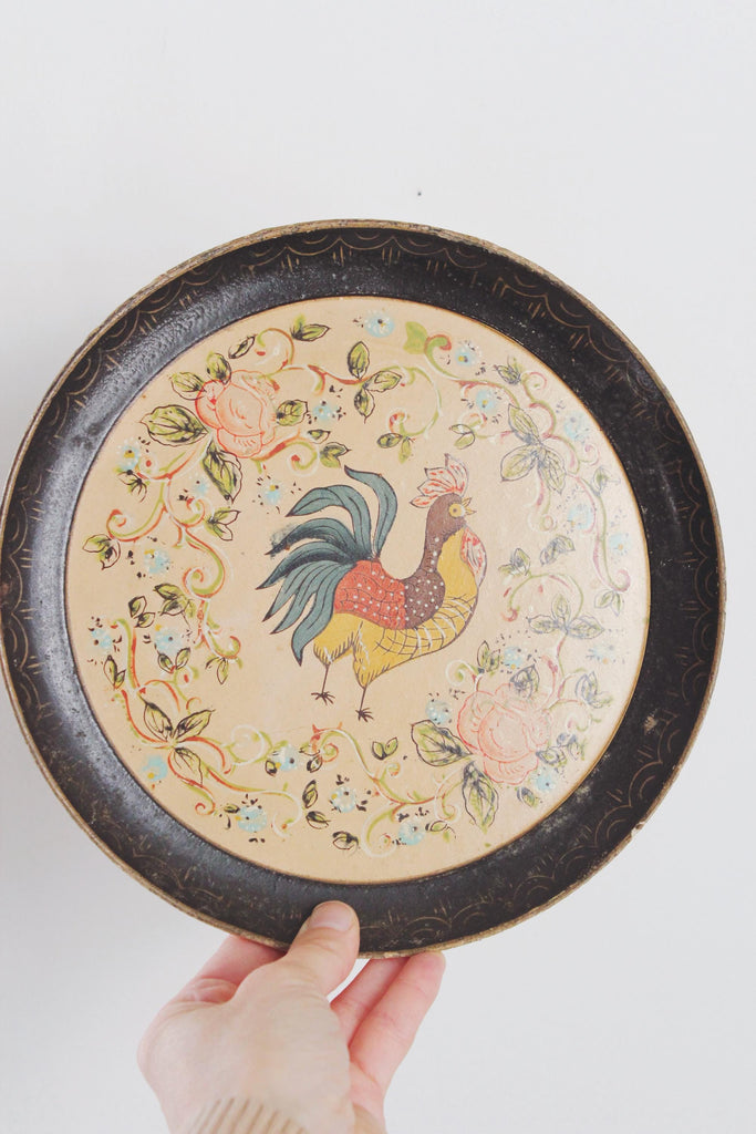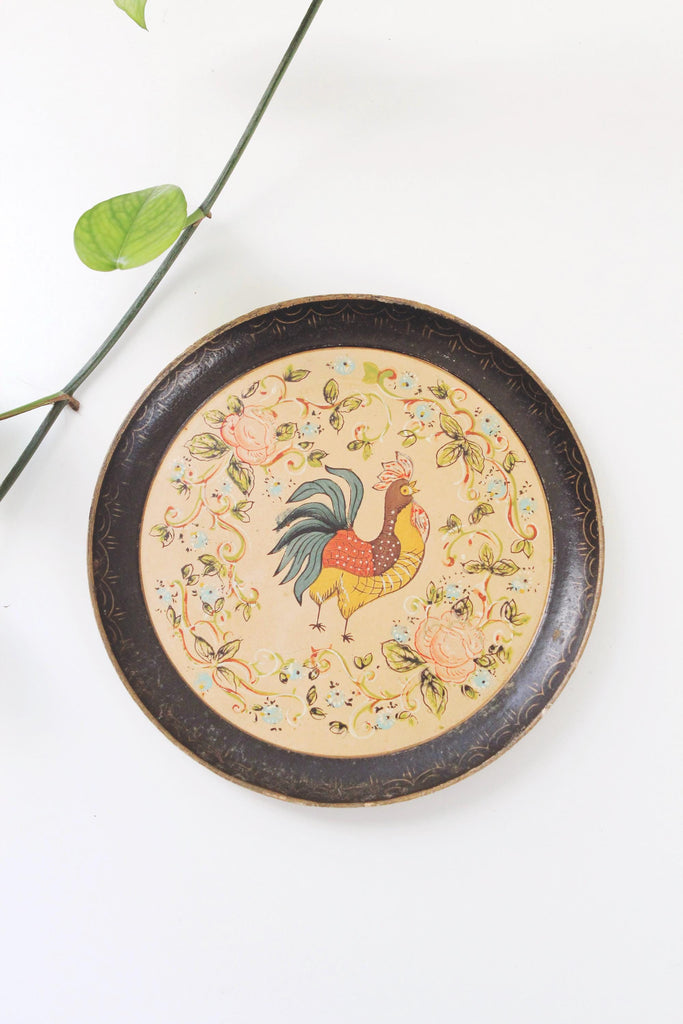 This is a vintage hand-painted Isco paper mache plate with a rooster design.