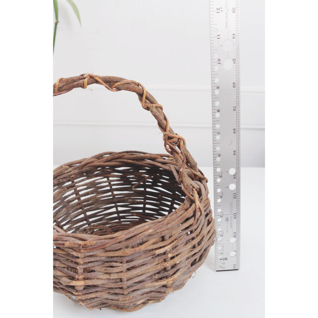 Vintage Hand-Woven Wicker Basket With Handle - Twig Construction, Rustic Farmhouse