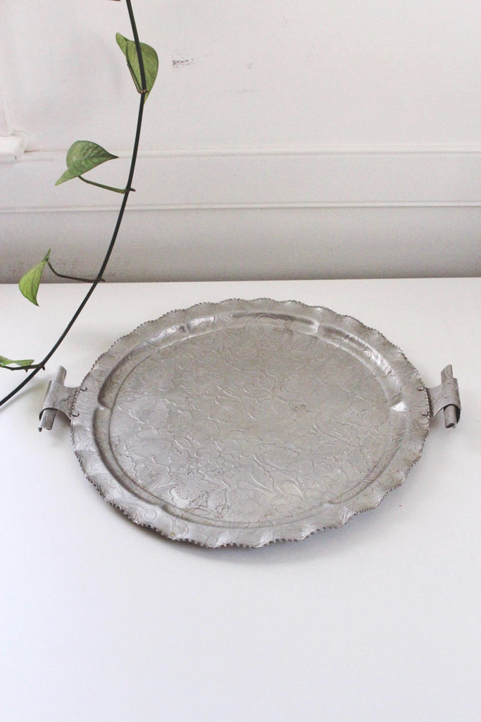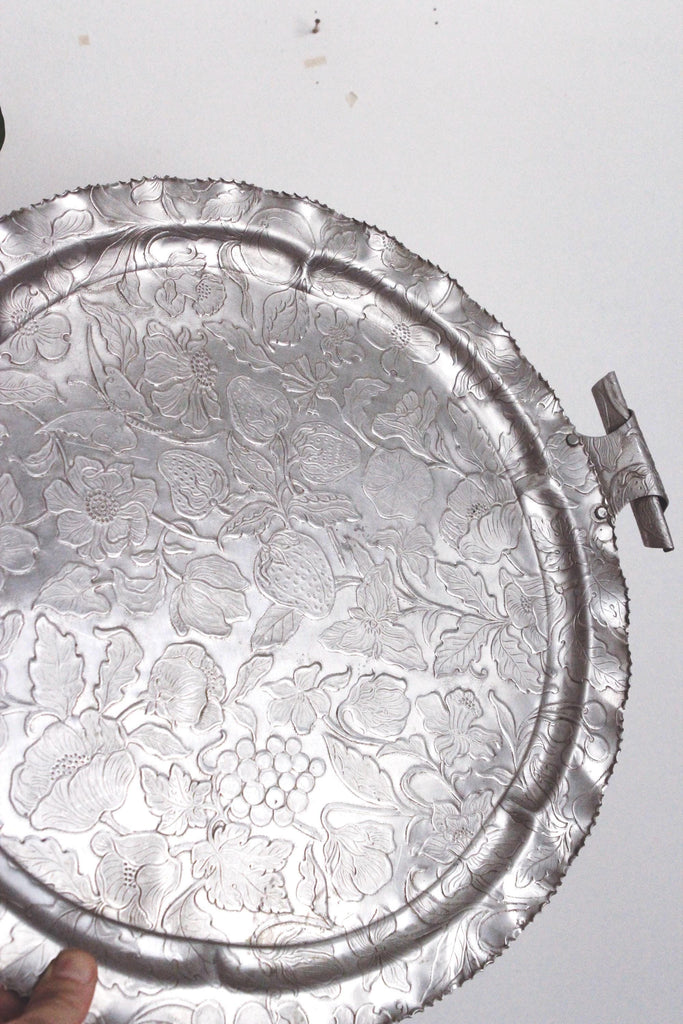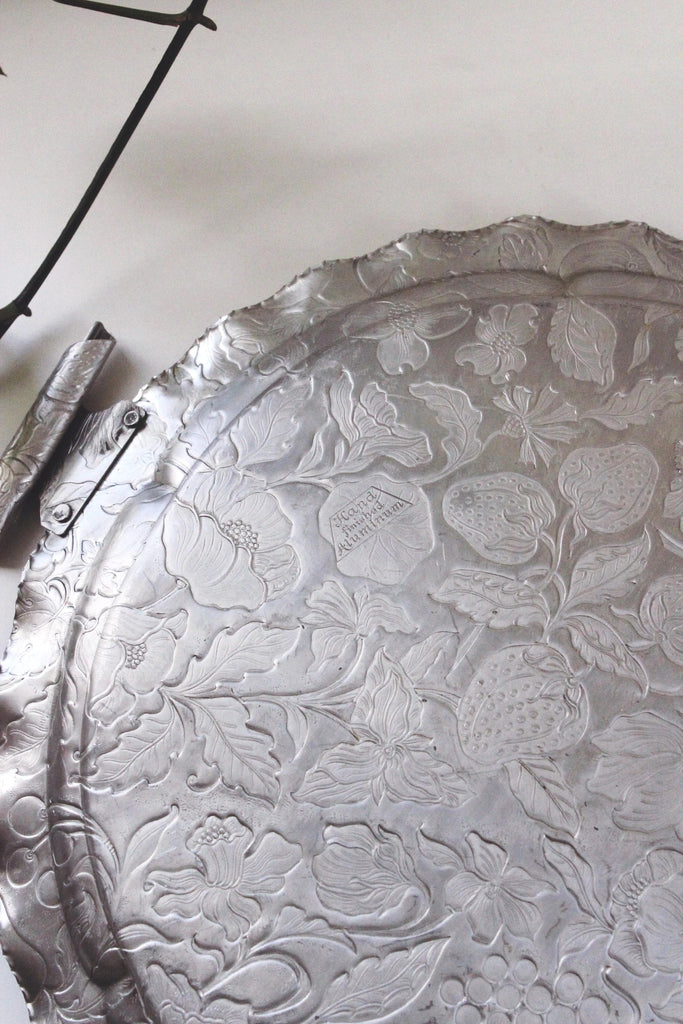 Vintage Hand-Wrought Aluminum Serving Tray - Embossed Fruit and Floral, Rodney Kent
