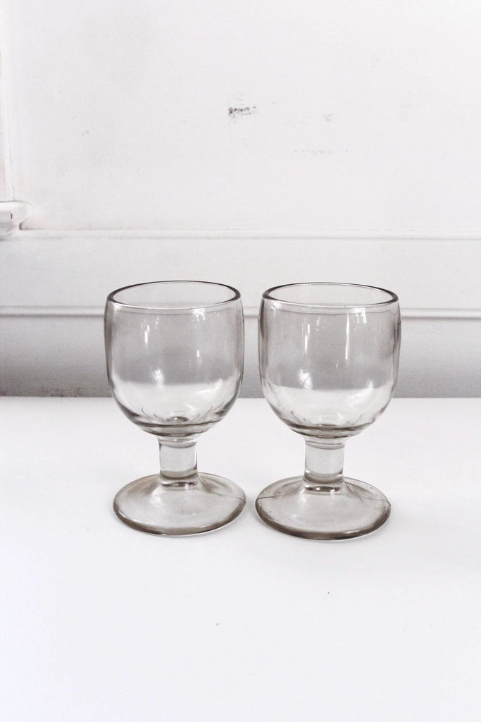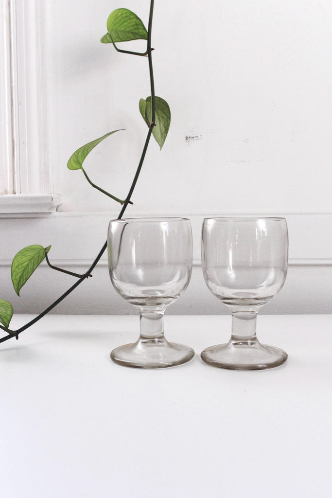 Vintage Heavy Thick Glass Wine Water Goblets Pair