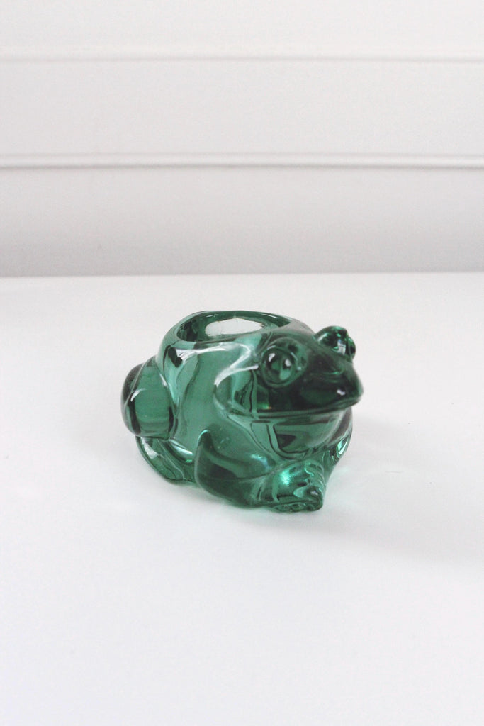 Vintage Indiana Glass Frog Votive Candle Holder Spanish Green
