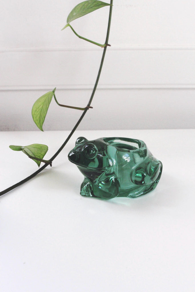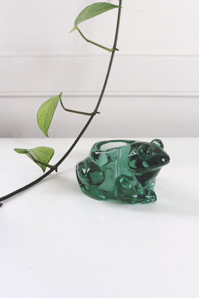 Vintage Indiana Glass Frog Votive Candle Holder Planter Spanish Green