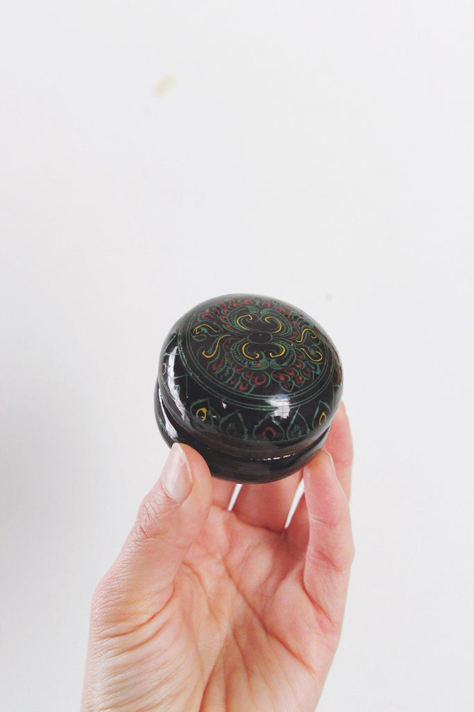 Vintage Kashmiri hand-painted paper mache trinket box.