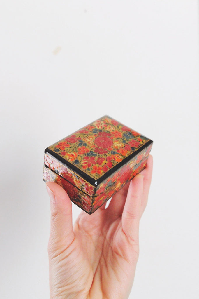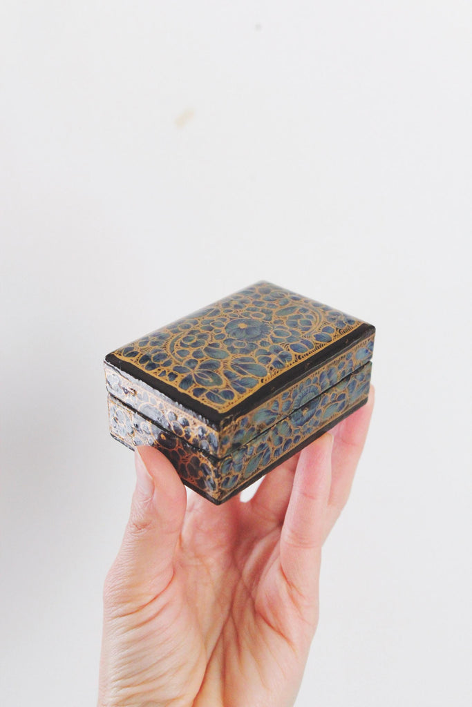 Vintage Kashmiri Hand Painted Paper Mache Trinket Box