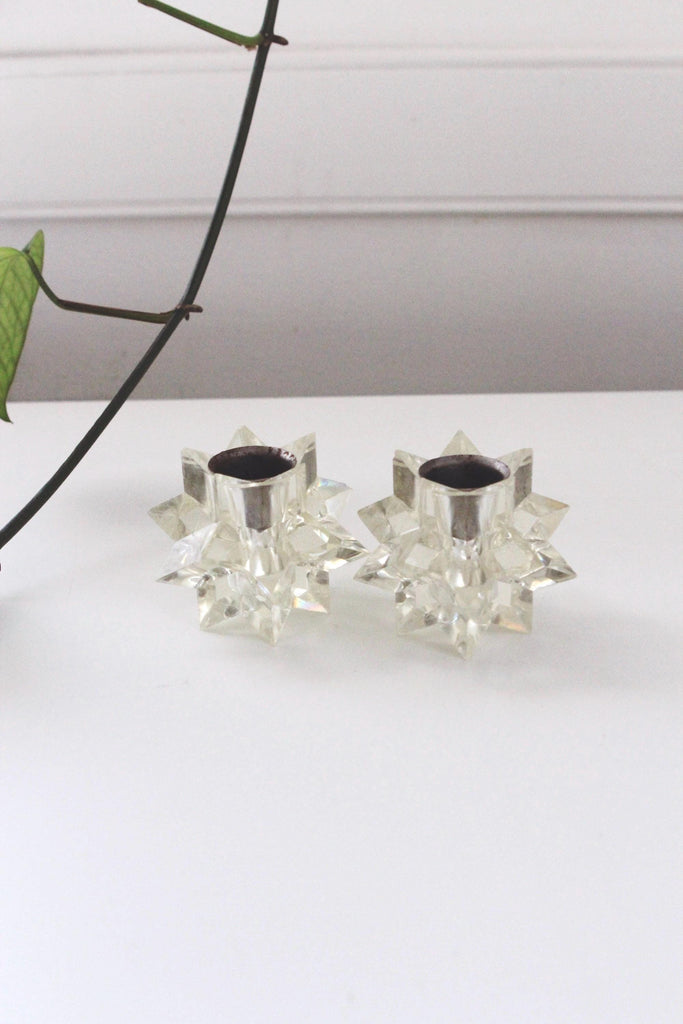 Vintage Mid Century Starburst Candle Holder - Mutifaceted Lucite, Italian Made, Set of 2