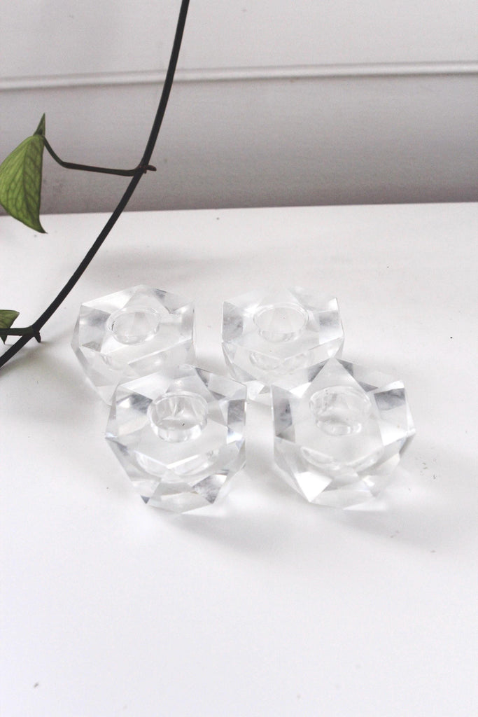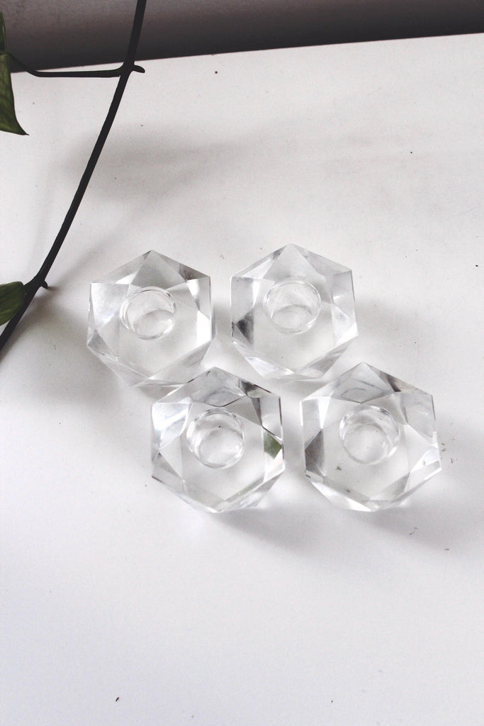 Vintage Mid Century Faceted Candle Holder - Glass or Crystal