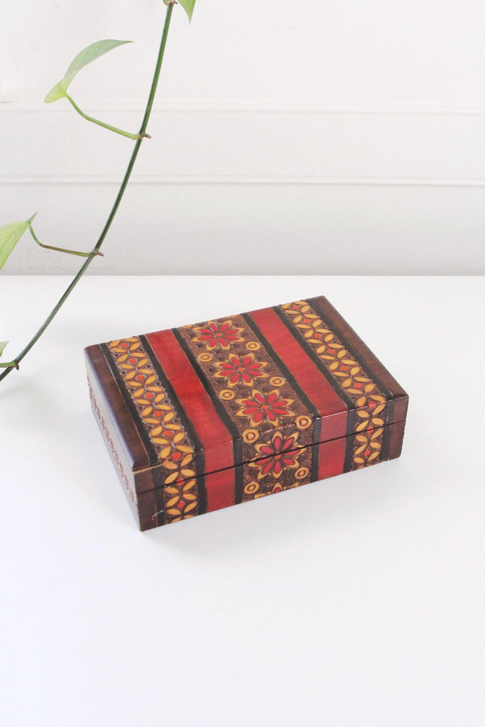 Vintage Polish Folk Art Wooden Trinket Box Floral Hinged Lid