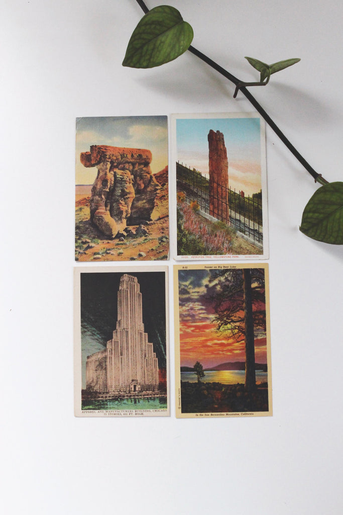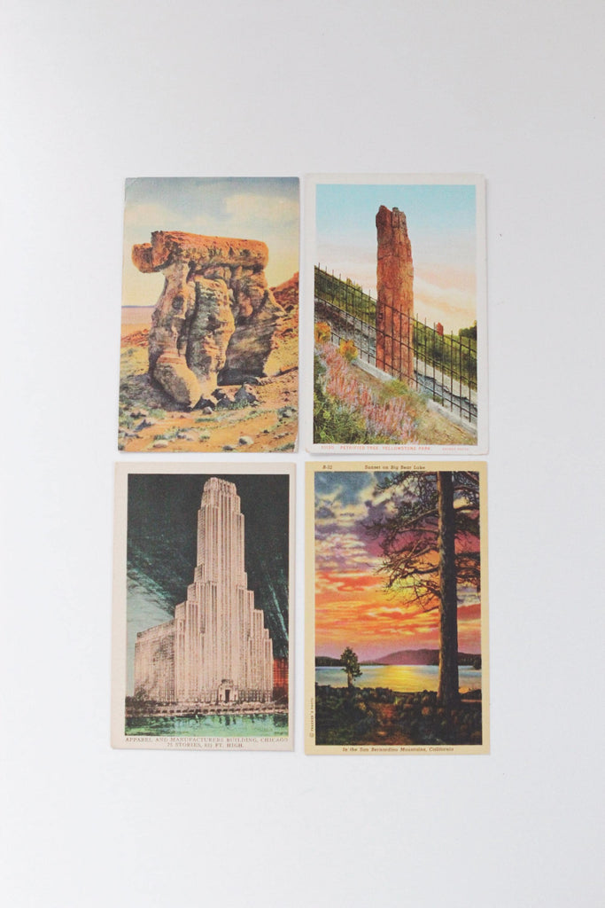 Vintage postcard featuring various state landmarks, national parks, etc.
