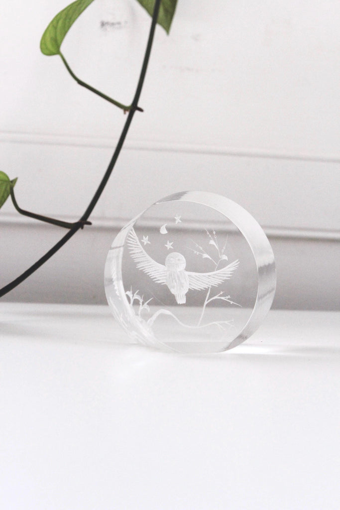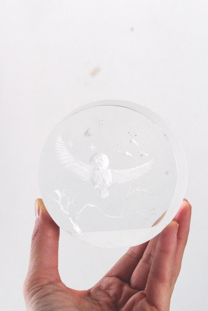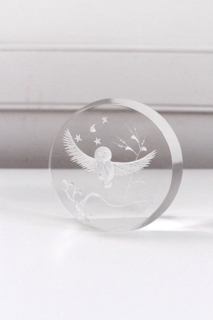 Vintage Reverse-Carved Acrylic Lucite Owl Paperweight