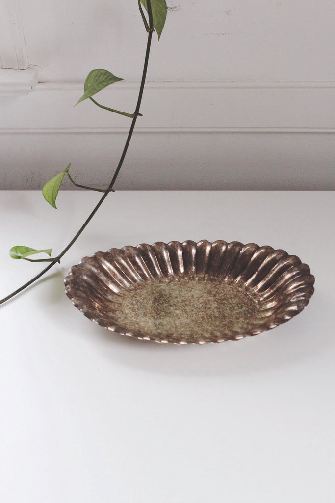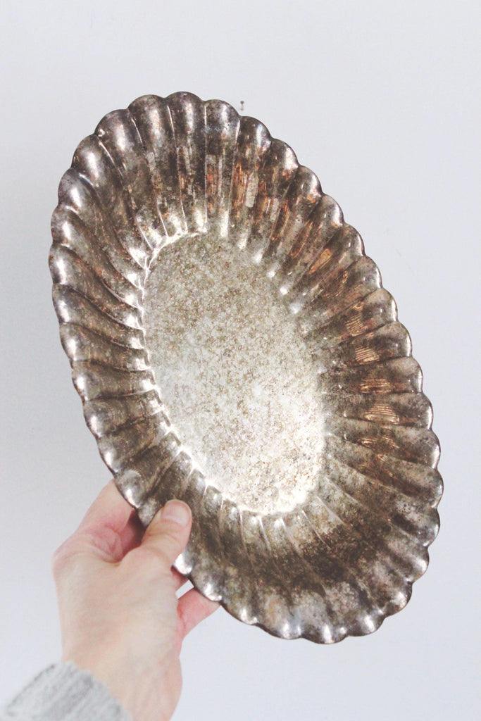 Vintage Silver-Plated Scalloped Shell-Shaped Oval Serving Tray Trinket Dish
