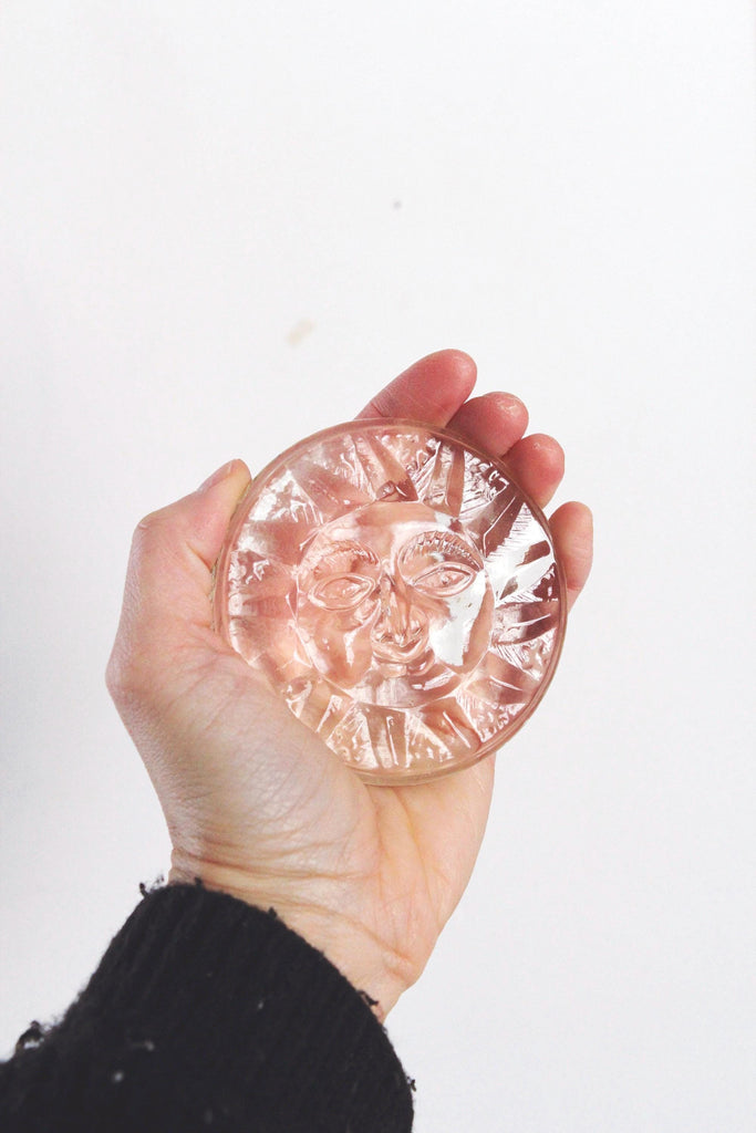 Vintage Solid Thick Clear Glass Sun Disc Paperweight
