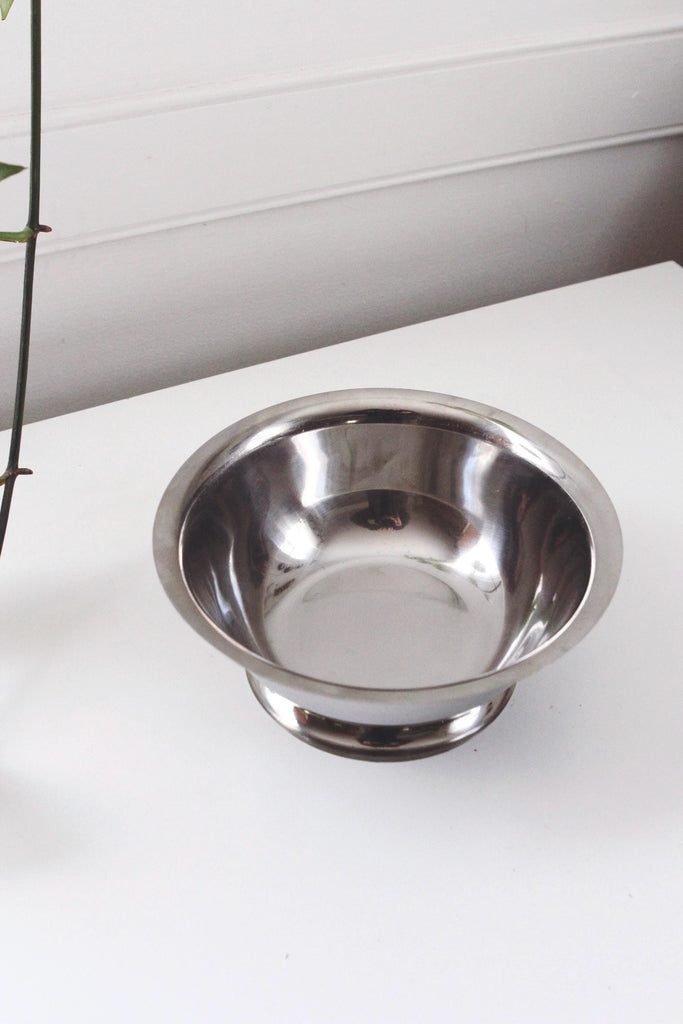 Vintage Stainless Steel Footed Pedestal Bowl Centerpiece - Normandy Distributors, Made in Japan