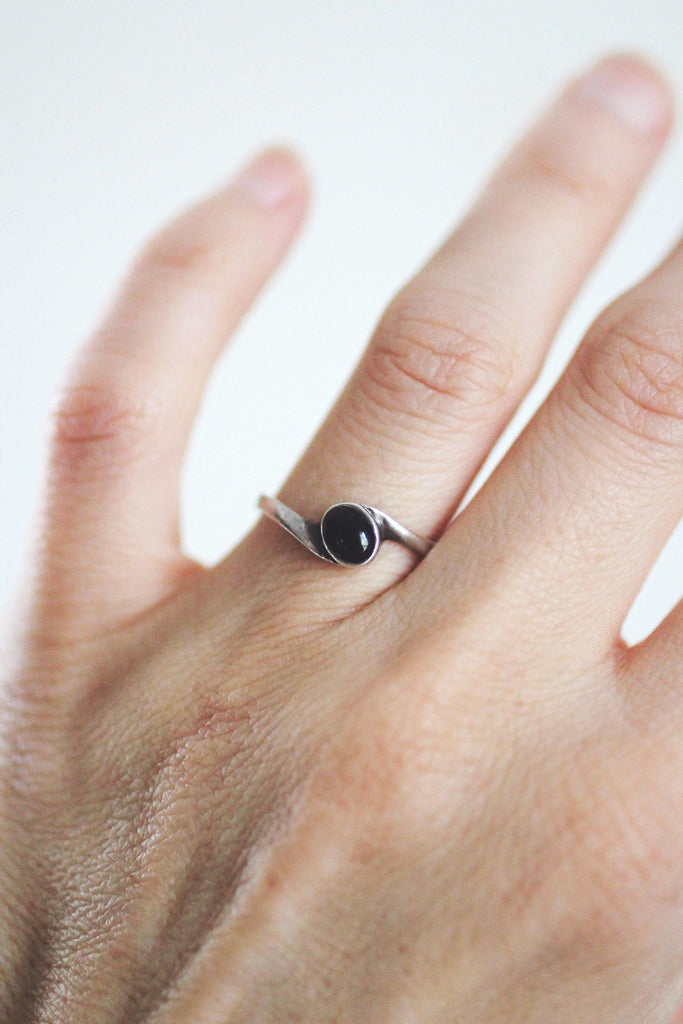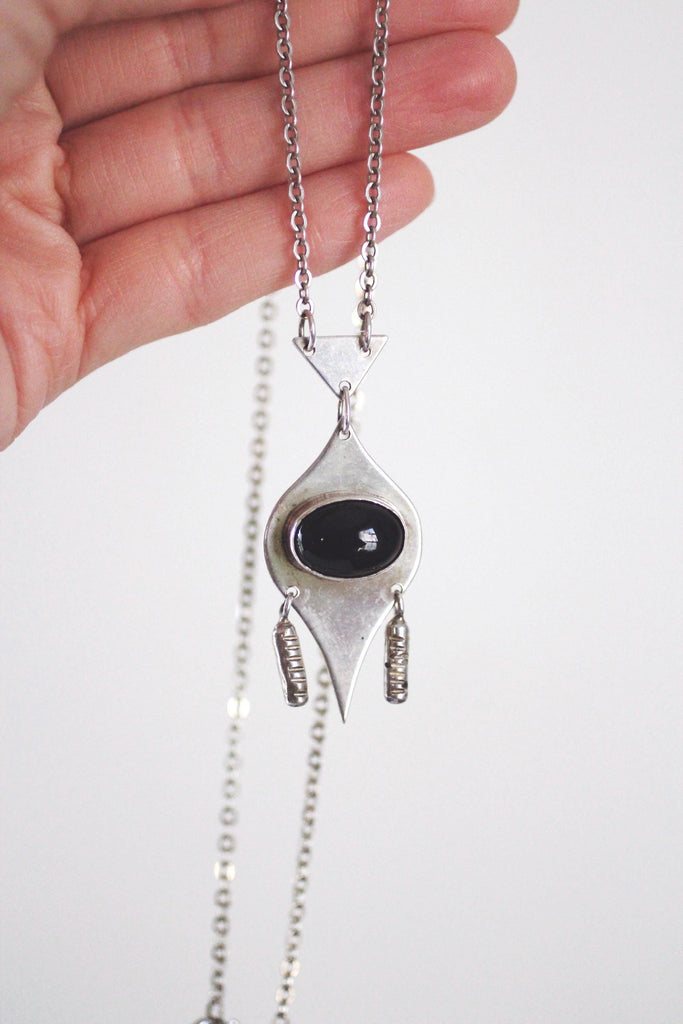 Vintage Sterling Silver Onyx Jewelry - Pendant, Necklace, Earrings, Ring - Geometric Modernist Design