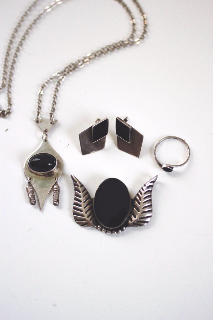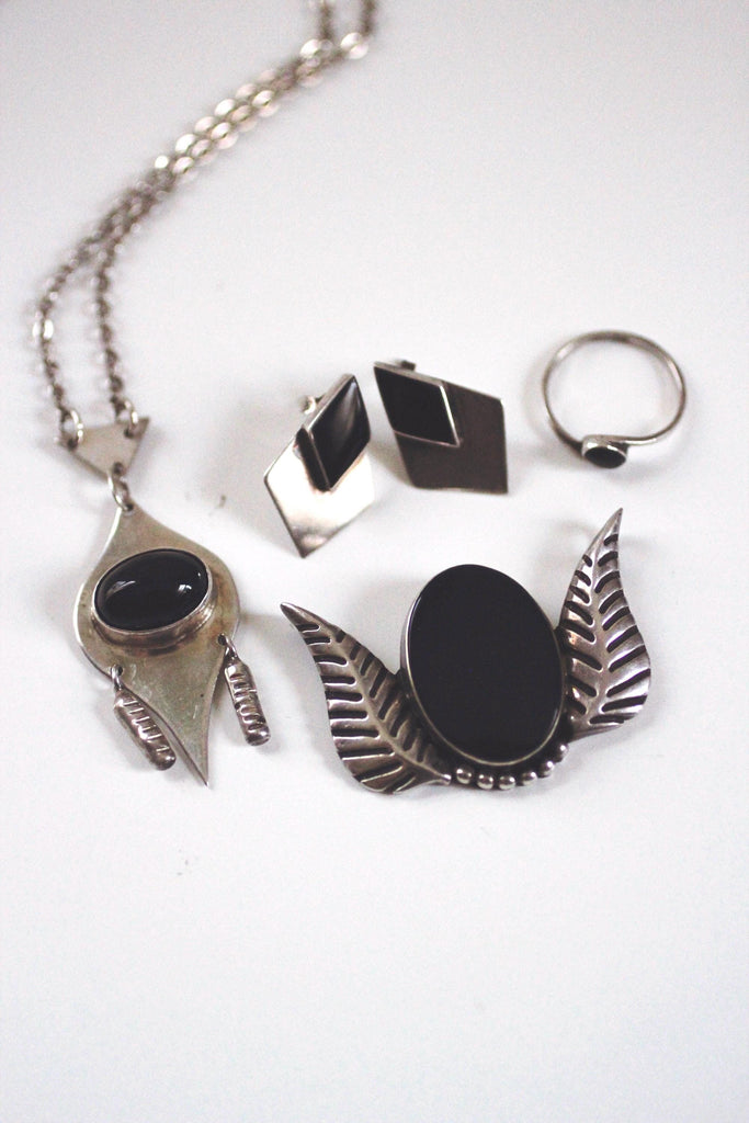 Vintage sterling silver jewelry with onyx stones.