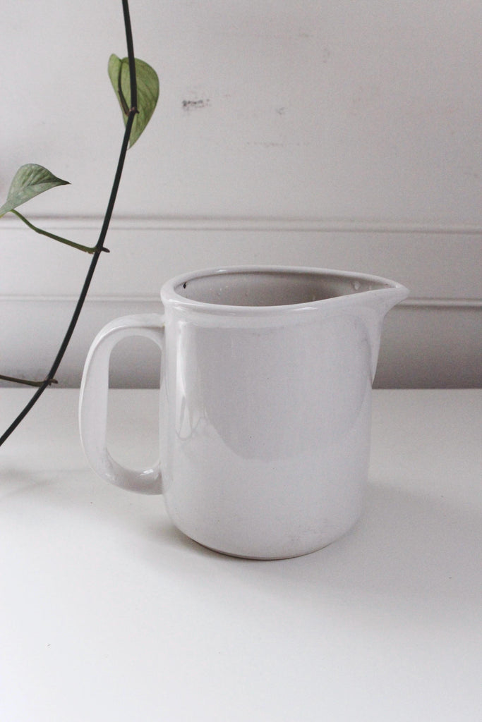 Vintage White Ceramic Pitcher Jug Vase - Mid Century Modern, Minimalist Style