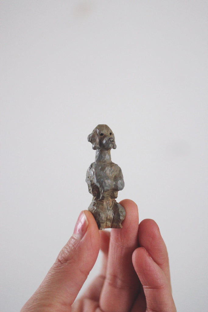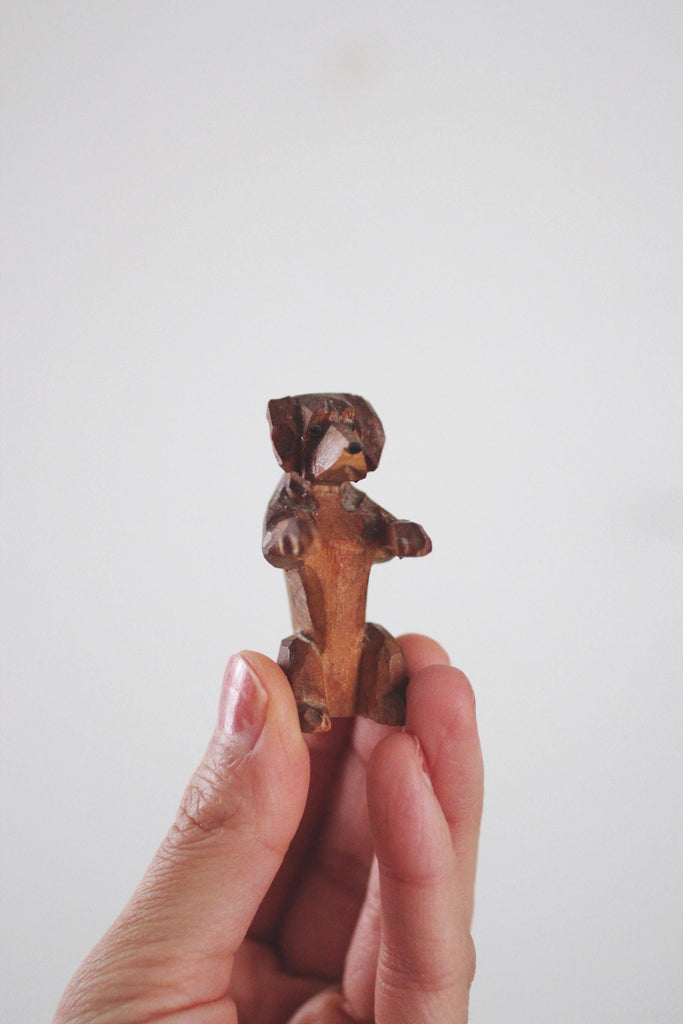 Vintage Wood Hand Carved Miniature Dog Figurine