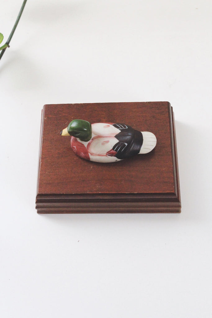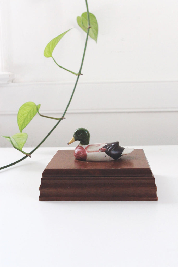 Vintage Wood Hand Painted Mallard Duck Card Jewelry Trinket Box