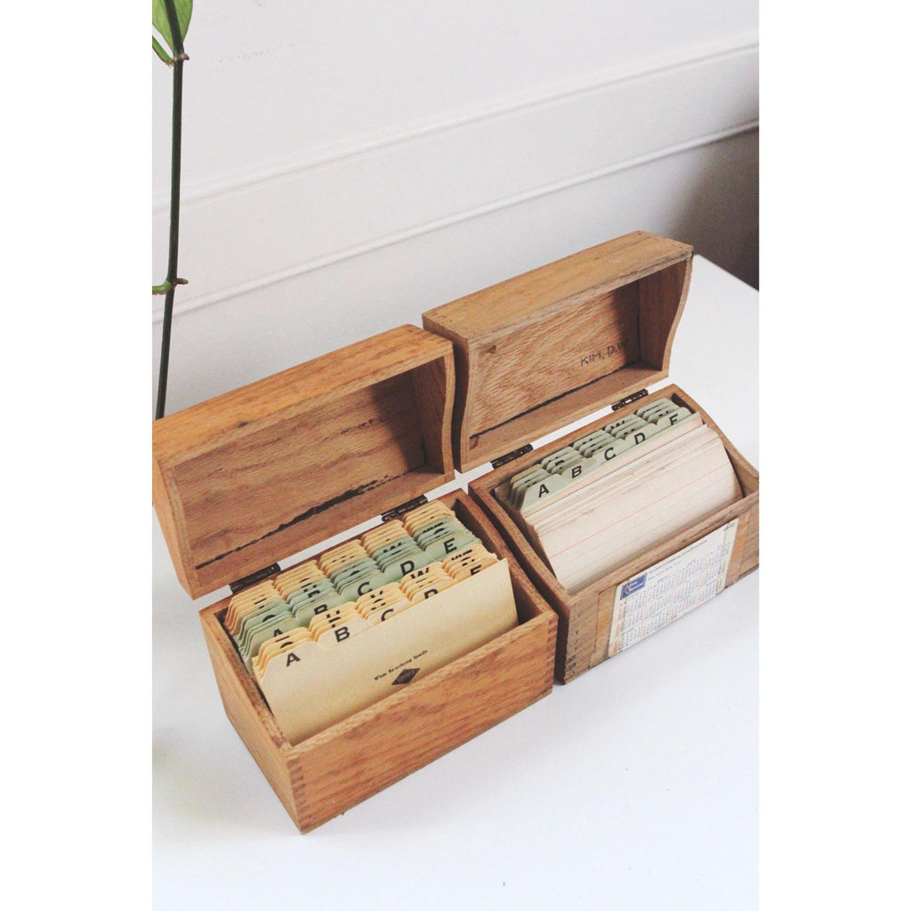 This item is a set of vintage wooden boxes commonly used to store recipes or index cards.